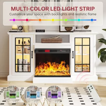 Farmhouse Fireplace TV Stand with 3-Sided Glass and Adjustable LED Flames